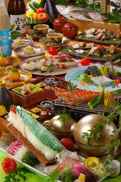 In addition to the famous “Yariki Ikizukuri” (squid sashimi) directly from Yobuko and “Robata Yaki” (grilled food cooked on the grill using bincho charcoal to slowly concentrate the flavor), please enjoy Hakata specialties such as Hakata Motsunabe and Mentaiko (cod roe).