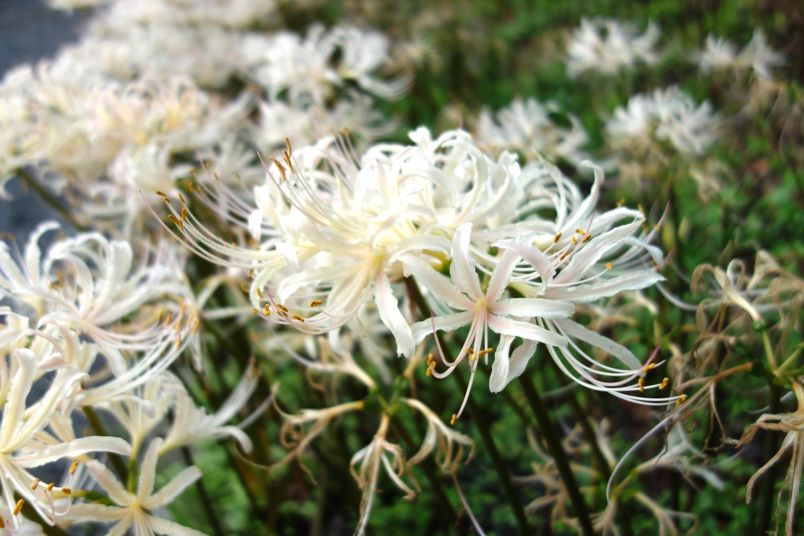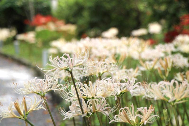 In addition to white ones, red and yellow spider lilies can also be seen, and they usually reach their peak bloom around the time of the fall equinox.