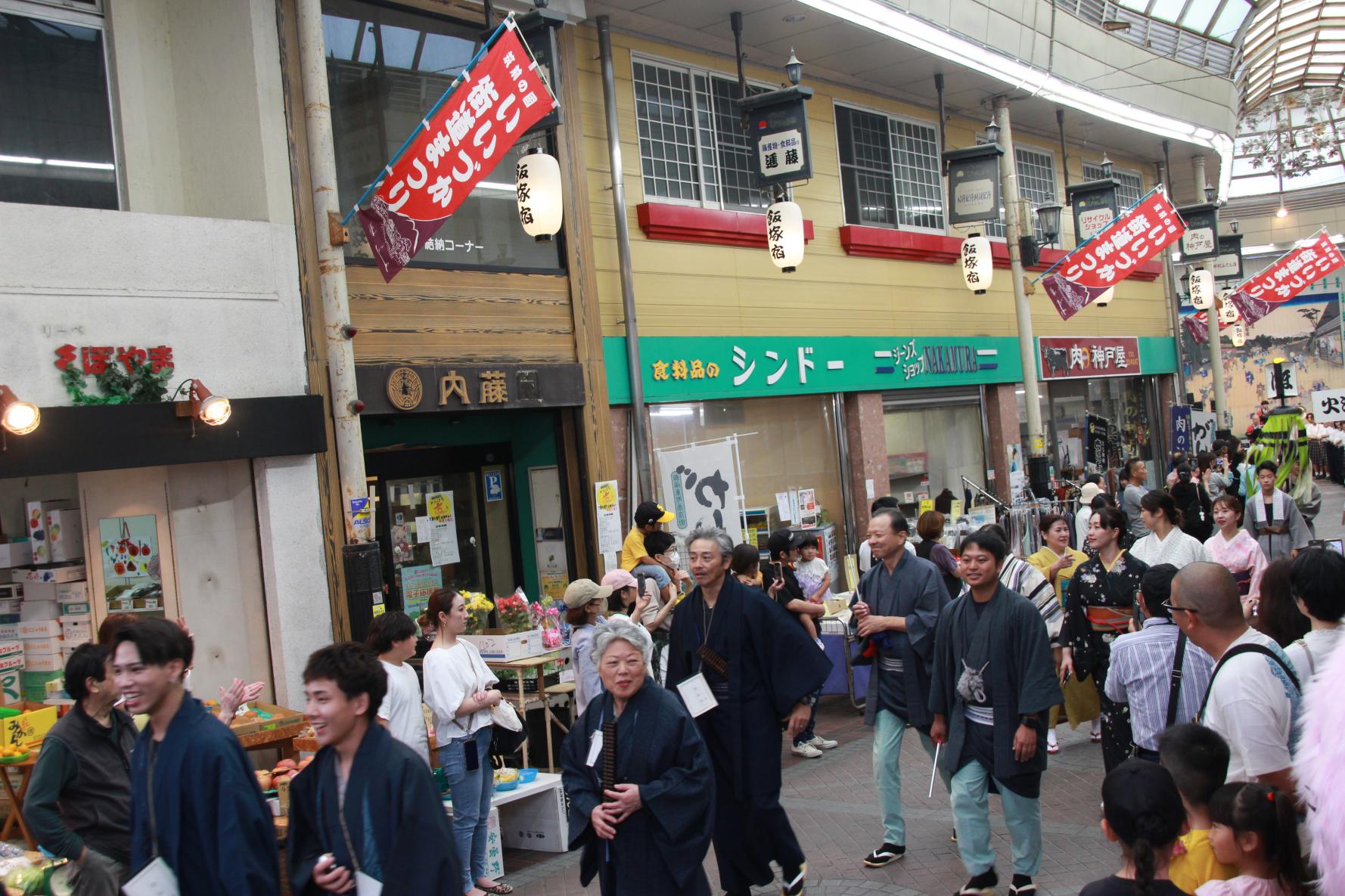 かつて長崎街道の宿場町「飯塚宿」として栄えた飯塚市中心商店街を会場に、大勢の参加者による仮装パレードやステージイベント、筑豊名物が集まったフードコーナーなど、笑顔の絶えない企画が盛りだくさんです。