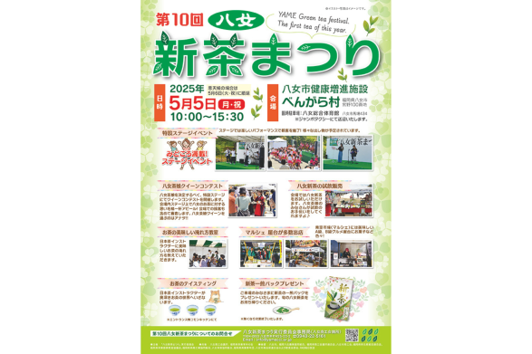 新茶の季節にあわせて開催される「八女新茶まつり」。八女新茶の試飲販売やお茶の淹れ方教室、屋台も多数出店。ステージでは、パフォーマンスや八女茶娘クイーンコンテストも開催されます。