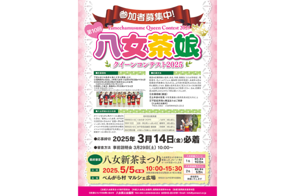 | 電話番号 | 0943-22-5161(八女新茶まつり実行委員会事務局(八女商工会議所)) |