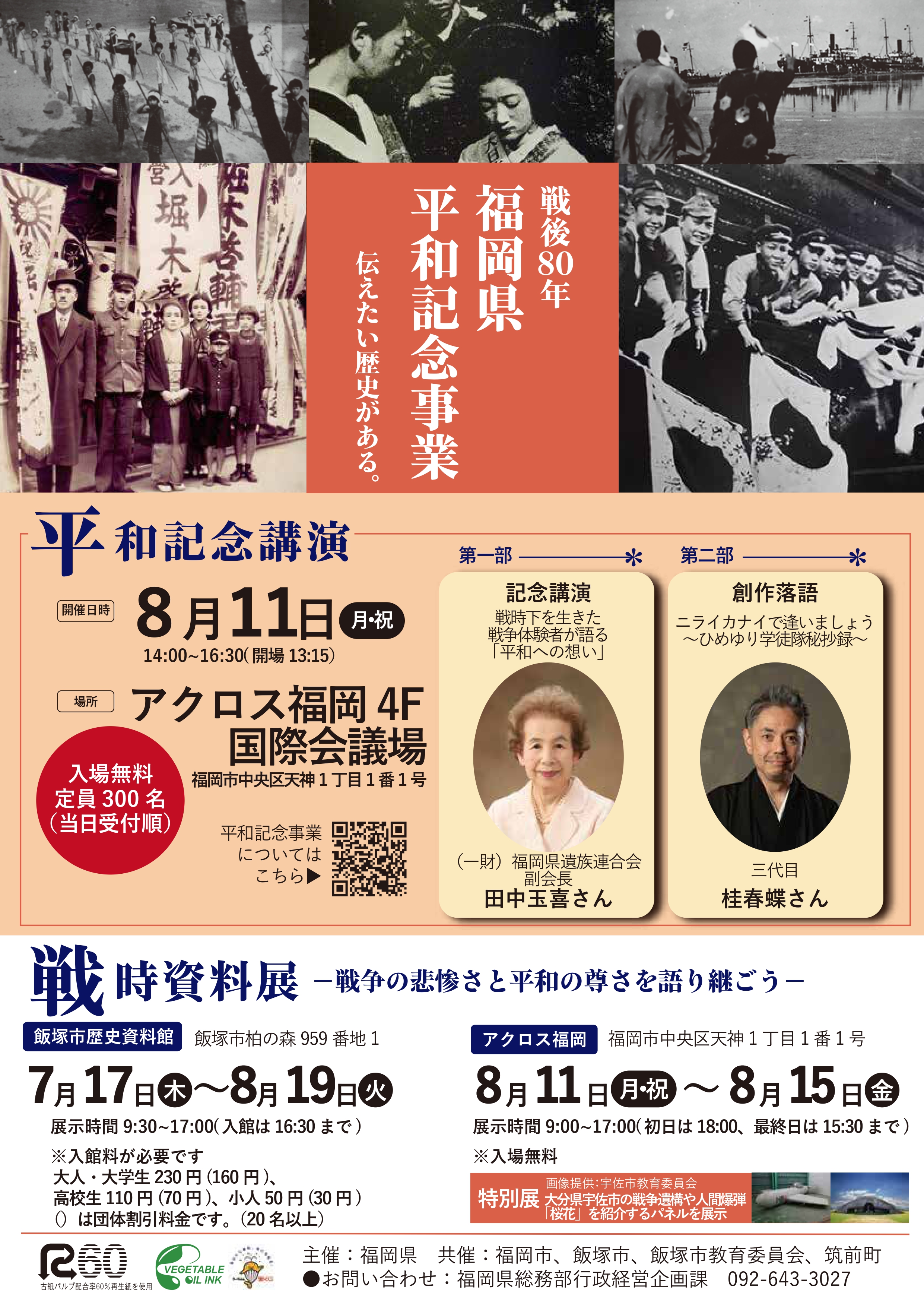 戦後80年福岡県平和記念事業「平和記念講演/戦時資料展」(アクロス福岡)
