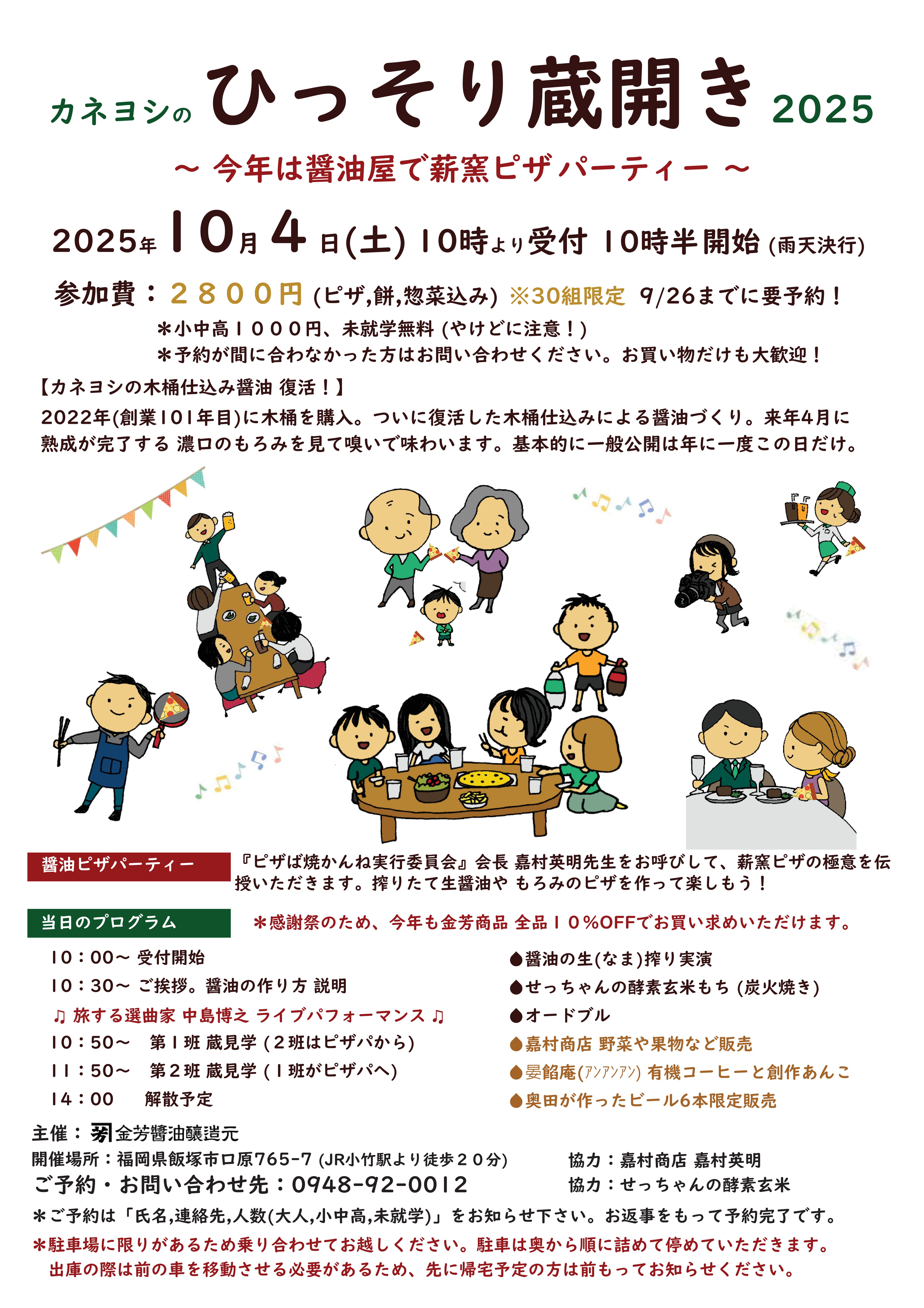 | 電話番号 | 0948-92-0012(金芳醬油醸造元(お問合せ・ご予約)) |
