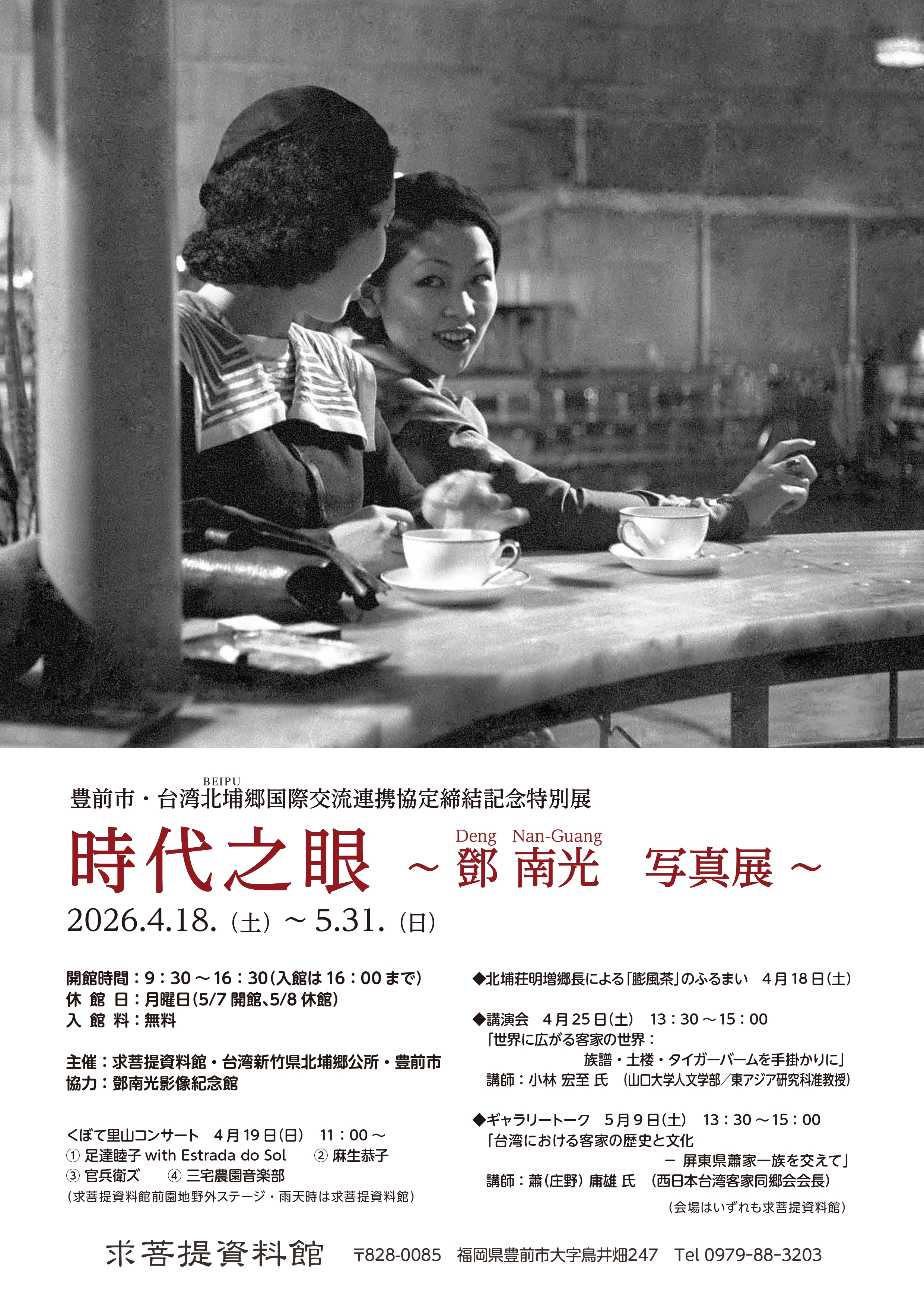 【求菩提資料館】豊前市・台湾北埔郷国際交流連携協定締結記念「時代之眼 ~鄧南光 写真展~」