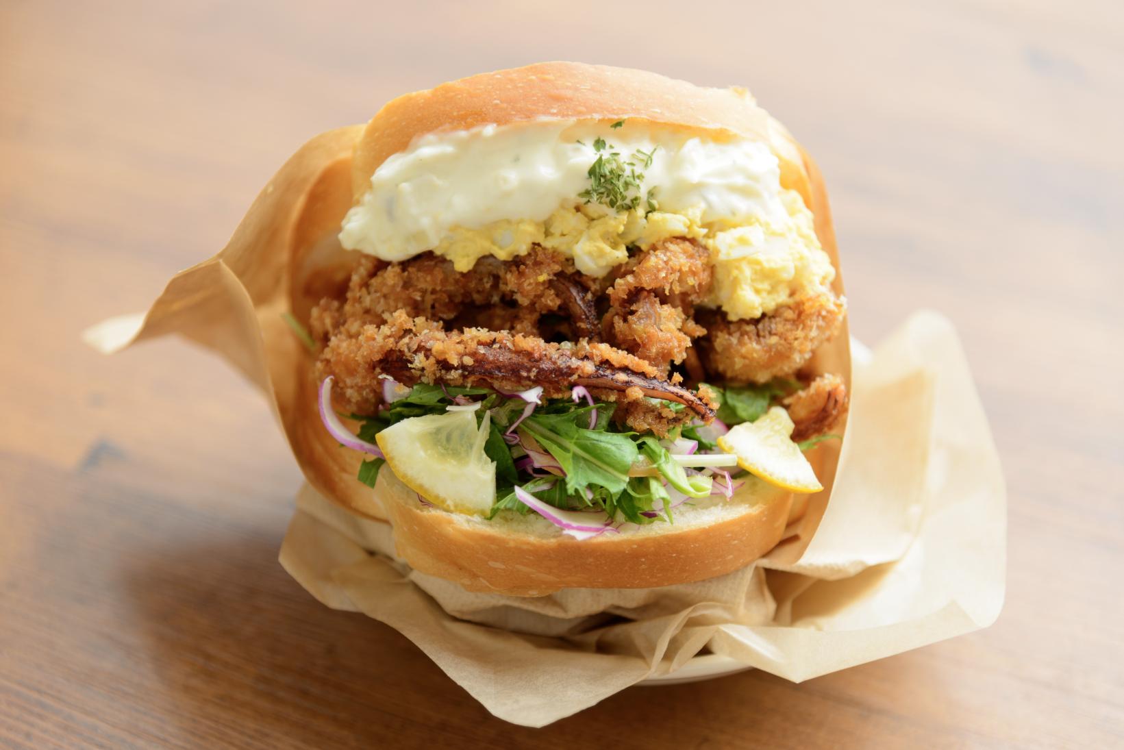 焼きたてパンにイカフライとたっぷりのタルタル&タマゴを挟んだ、大満足の逸品。