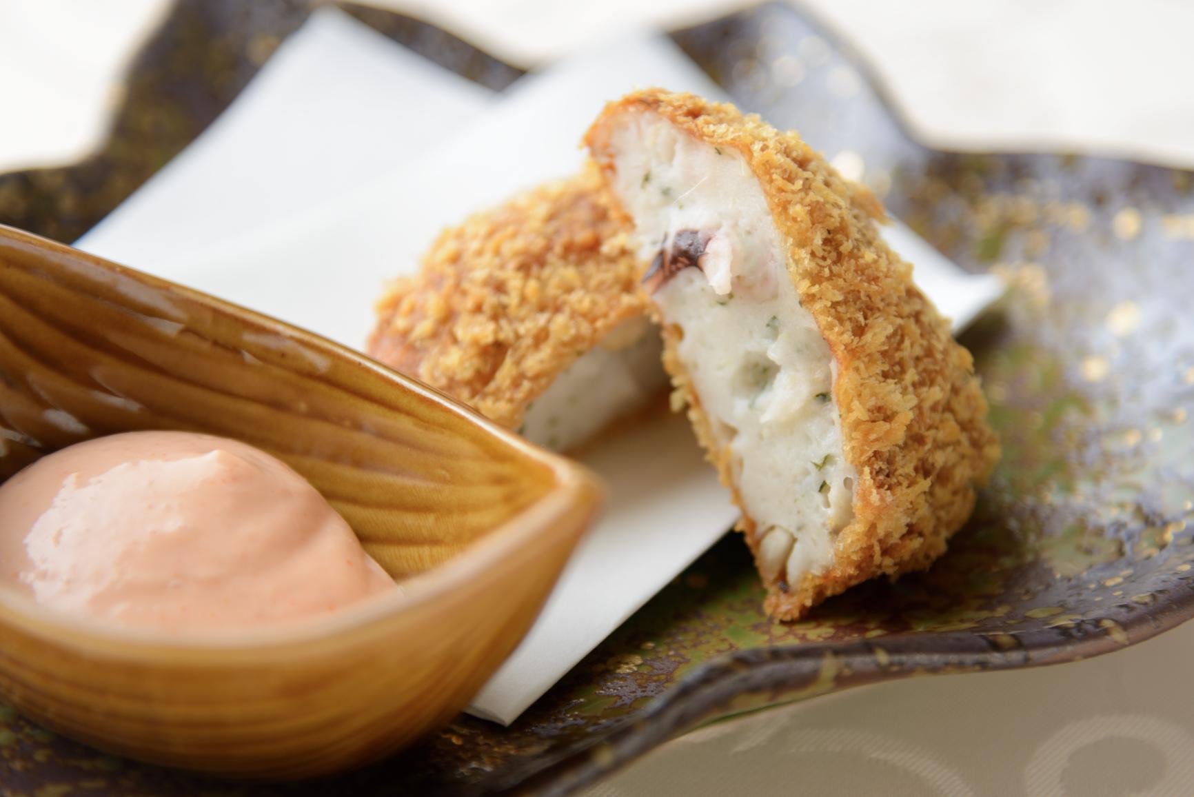 サクサク衣とイカすり身のモチッと食感が絶妙。明太マヨが旨味を一層引き立てる。