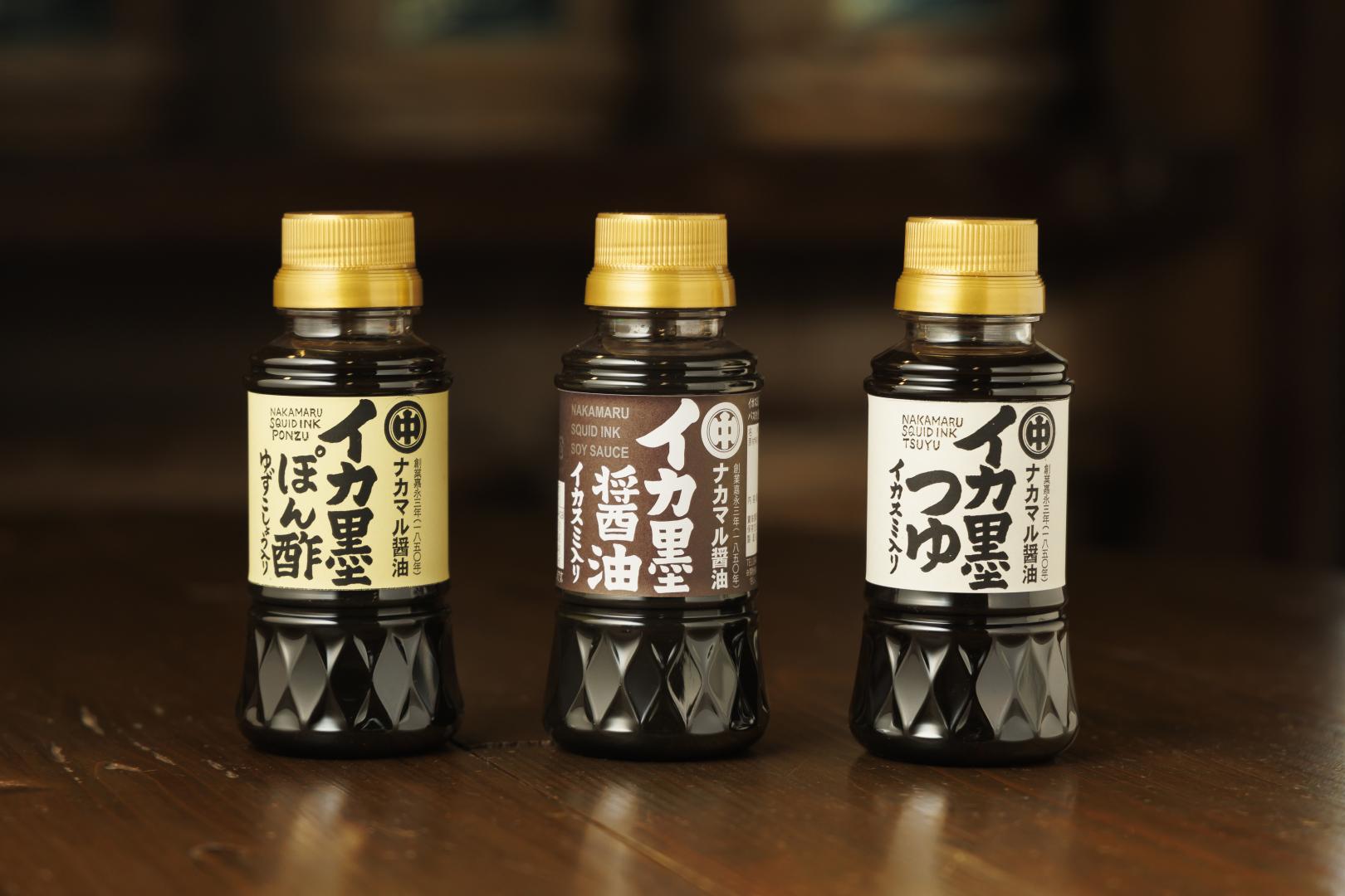 イカ墨醤油、イカ墨つゆ、イカ墨ぽん酢 各650円