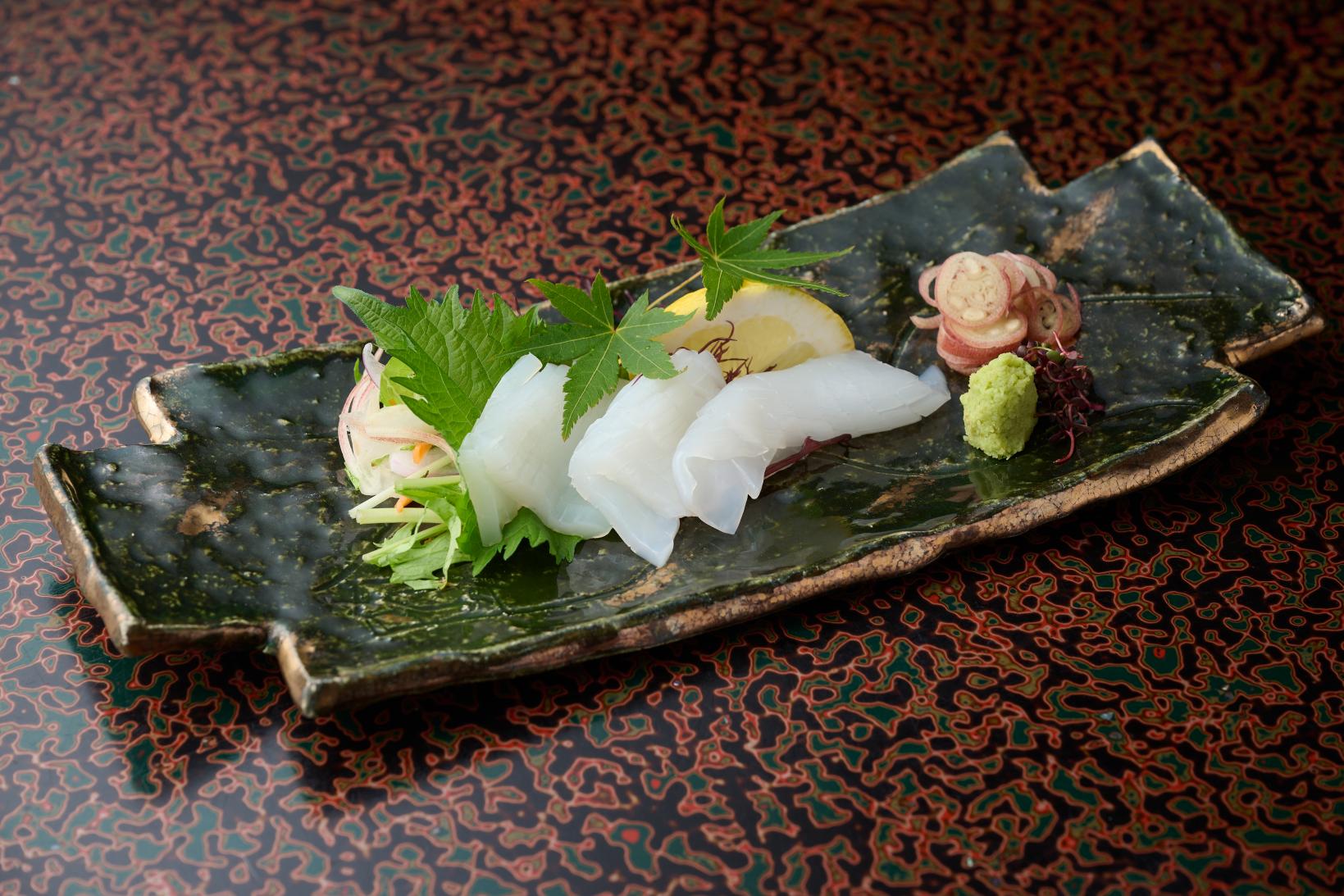 鮮度の高い玄海灘産のイカは、酒のアテにもぴったりな刺身でどうぞ。