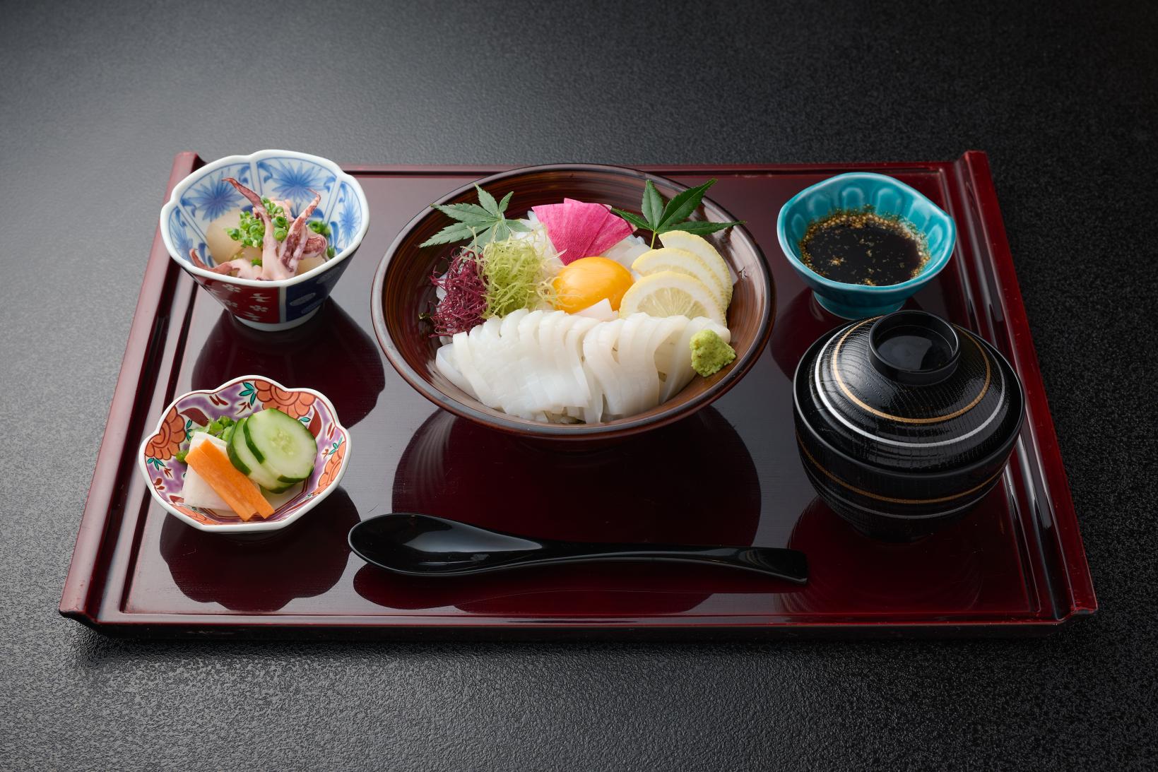 水揚げ後すぐに冷凍して旨味を凝縮させたヤリイカを、贅沢に漬け丼に。
