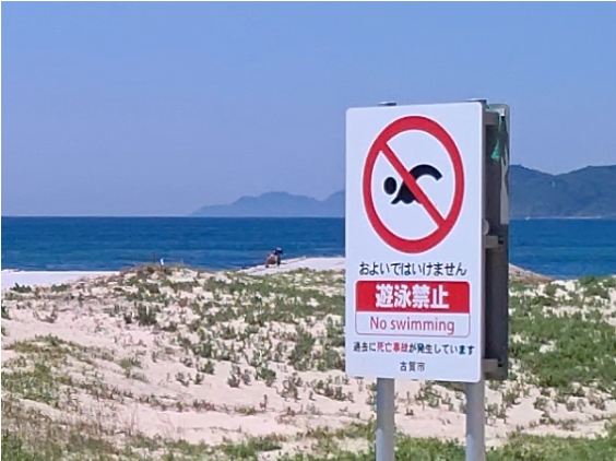2024年7月、古賀市の海岸において、水の事故により尊い命が失われました。今後この様な事故を防ぐためにも水辺の危険性について正しく認識する必要があります。古賀市の海岸は、遊泳場所ではありません。古賀市に限らず、監視員がいる海水浴場等以外では絶対泳がないようにお願いします。