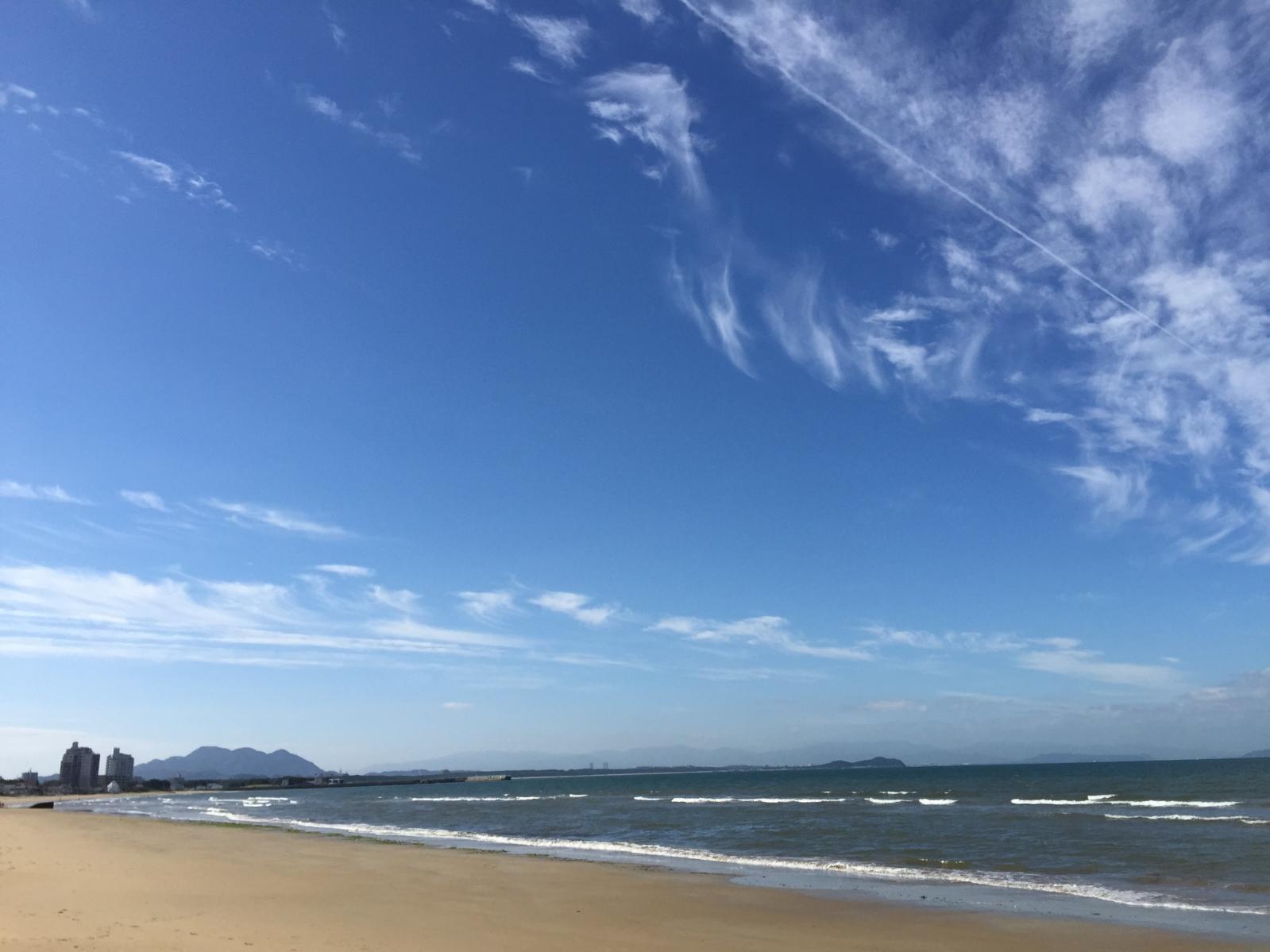 粒子が細かい白砂、周囲は自然豊かで景観も美しい、福岡屈指のロングビーチ。浜辺に並ぶ海の家を利用すれば駐車場が無料になります。