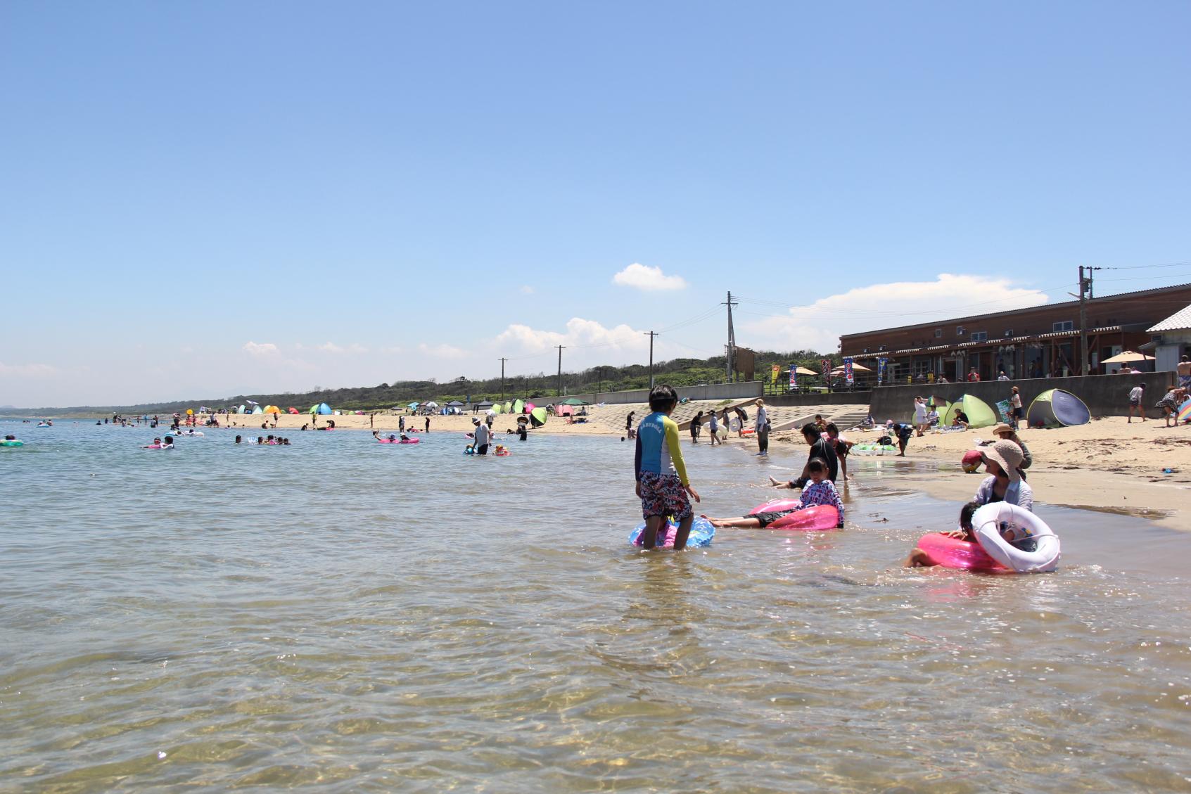 白くてサラサラの砂浜で、遠浅で小さいこどもでも安心。ライフセイバーもいるので安心です。(7月の土・日曜日、8月毎日)