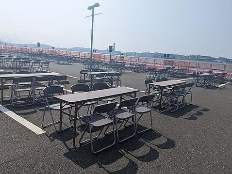 桟敷席の後方に設置予定の席です。長テーブルの両側に椅子を6席分ご用意しています。