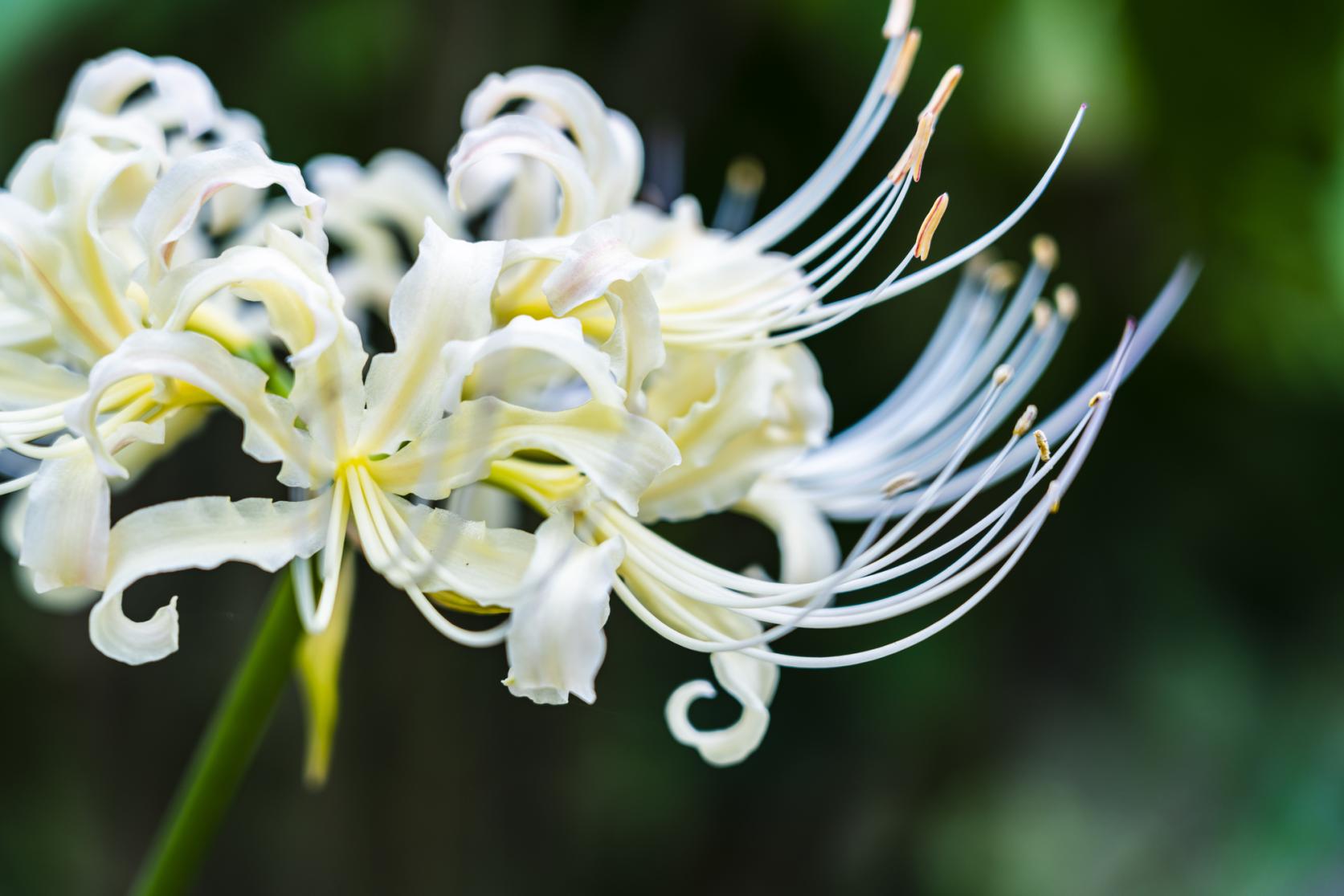 지쿠조마치(築上町)의 덴보지(伝法寺) 지구에 있는 후로산 쇼코지(不老山正光寺) 경내 일대나 덴보지 공원에서는, 약 10,000개의 흰 꽃무릇을 즐길 수 있습니다. 빨간색과는 멋이 다른 오프 화이트의 꽃무릇은 늠름한 귀부인 같은 모습입니다. 또한 주변은 깊은 숲으로 둘러싸여 있어 흰색과 녹색의 대비도 아름답게 보입니다. 흰색 이외에 빨간색과 노란색의 꽃무릇도 볼 수 있어 9월 중순에 절정을 맞이합니다.