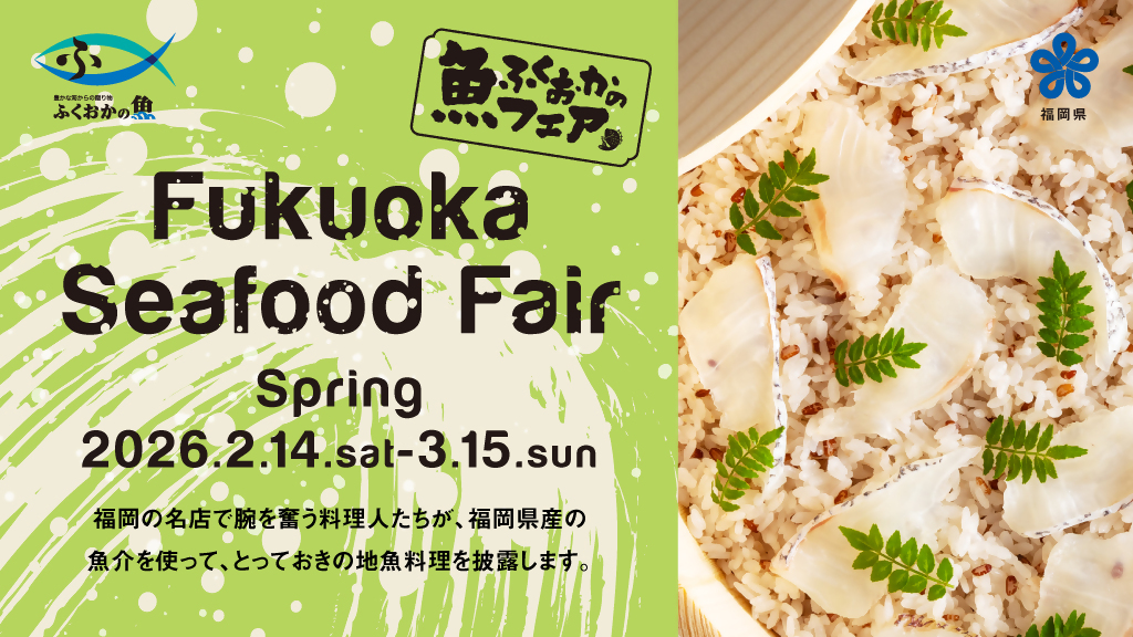 2026년 2월 14일부터 3월 15일까지, 현내 22개 음식점에서 제철 지역 생선을 맛볼 수 있는 Fukuoka Seafood Fair가 개최됩니다.