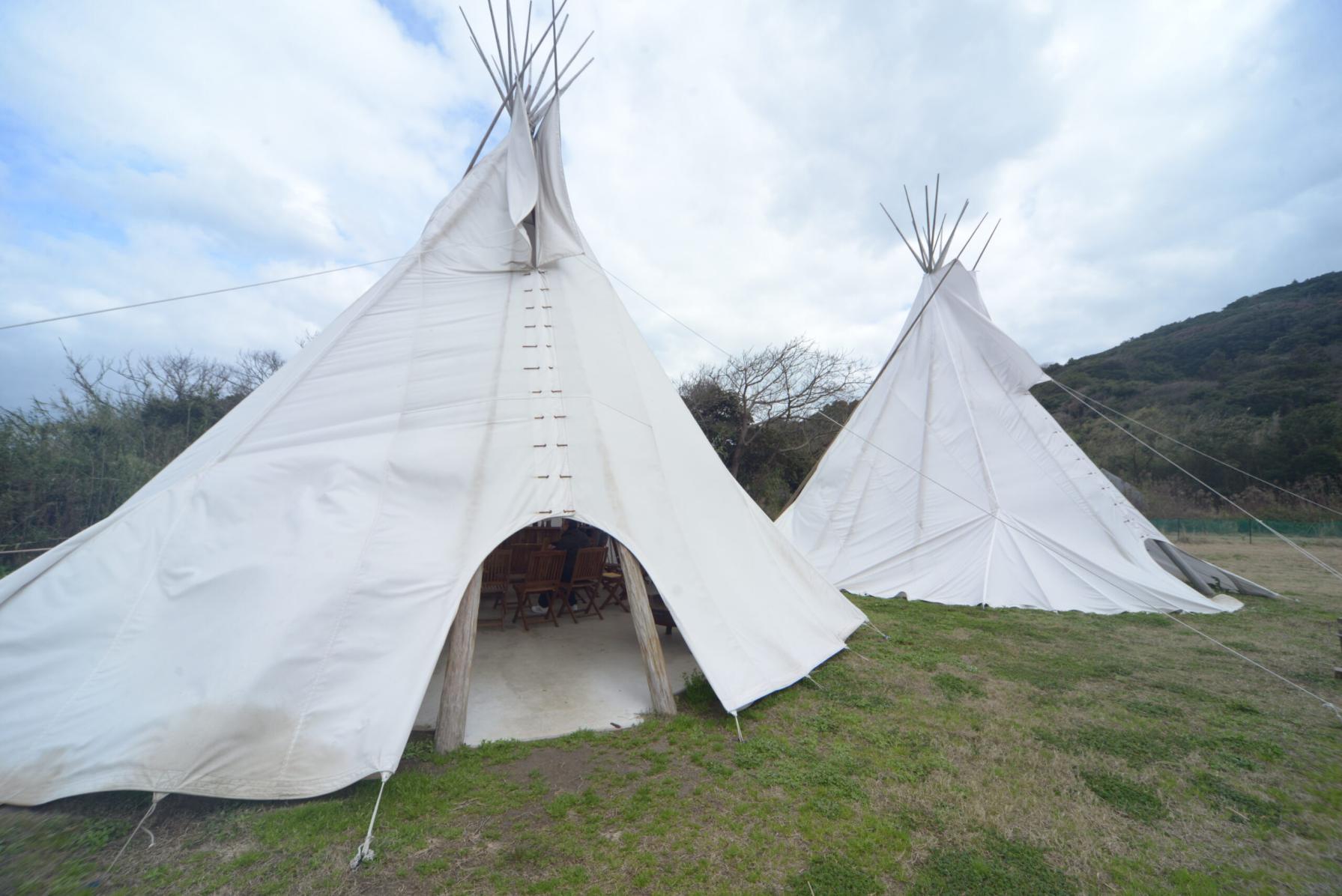 약 2ha의 넓은 부지에 화장실과 샤워실, 텐트 사우나가 갖춰져 있습니다. 밤에는 무제한으로 주류가 제공되는 바가 오픈해 모닥불 주변에서 느긋하게 힐링할 수 있습니다. 여름에는 ‘우시로하마’라는 아름다운 해변에서 수영을 즐길 수 있습니다.
