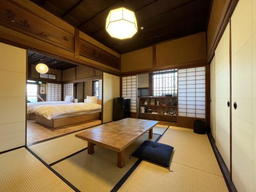 다이쇼 시대의 상가를 대담하게 개조한 숙박시설 ‘미나모’. 과거와 현재의 시간을 방불케 하는 객실에서는 나무 특유의 따스함이 느껴집니다. 아침식사는 에도 시대에 지어진 가가미다 저택에서 제공됩니다. 생산자의 정성과 대지의 힘이 담긴 재료를 사용한 현지 요리로 활기찬 하루를 시작해 보세요.