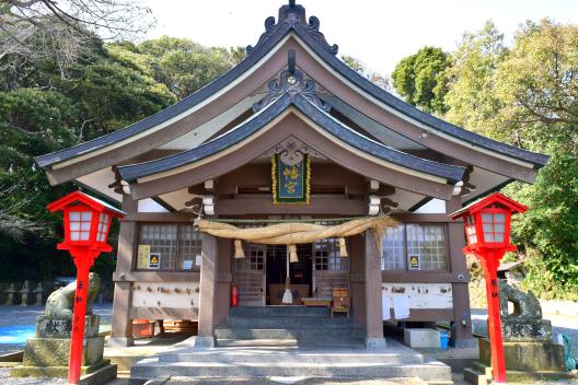4月16日には春季大祭が行われ当日は御座を実施。境内に沈鐘公園、海女の石像、県の天然記念物イヌマキ原生林があります。