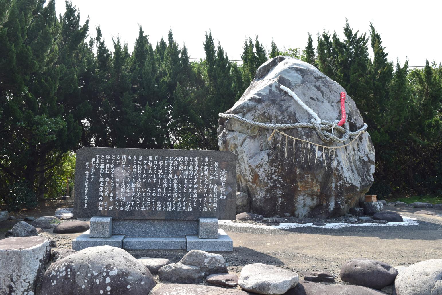 鳥居のすぐ横には港があり、心地よい潮風が吹きます。ここには異国の釣鐘が海に沈んでいるという伝説がありましたが、1919年に引き揚げたところ、その正体は巨石だと判明。現在は神社の参道に安置されています。